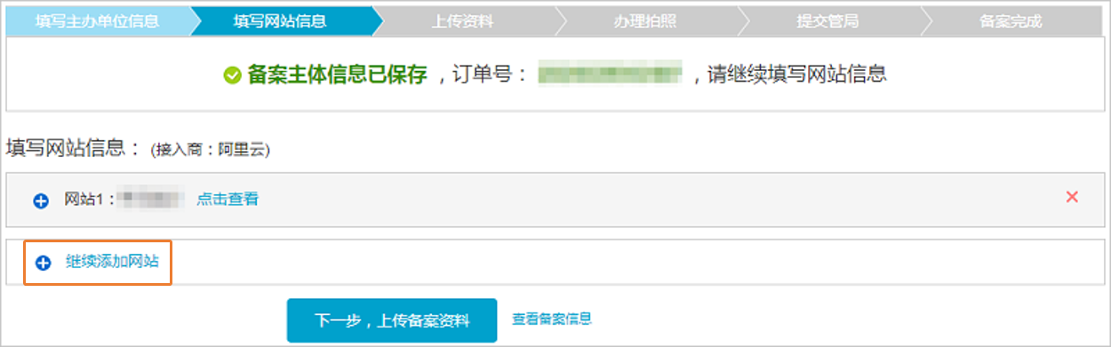 因各省管局要求不同,在填寫時請根據(jù)系統(tǒng)提示操作,您也可以先查看各省管局備案規(guī)則。 備案主體信息即備案主辦者的信息,填寫規(guī)范如下: 系統(tǒng)獲取填寫備案主體信息環(huán)節(jié)填寫的主辦人名稱,自動填充。 系統(tǒng)獲取填寫備案主體信息環(huán)節(jié)填寫的主辦人名稱,自動填充。 系統(tǒng)獲取填寫備案主體信息環(huán)節(jié)選擇的主辦單位證件類型,自動填充。 居民身份證、臺胞證、護(hù)照、軍官證等。 系統(tǒng)獲取填寫備案主體信息環(huán)節(jié)填寫的主辦單位證件號碼,自動填充。 根據(jù)選擇的負(fù)責(zé)人證件類型,填寫證件上所對應(yīng)的證件號碼。 請?zhí)顚懯謾C(jī)號碼,需真實有效且能聯(lián)系到備案負(fù)責(zé)人。 請?zhí)顚懯謾C(jī)號碼,需真實有效且能聯(lián)系到備案負(fù)責(zé)人。 個人備案無需填寫。 請?zhí)顚懯謾C(jī)號碼,需真實有效且能聯(lián)系到備案負(fù)責(zé)人。 請?zhí)顚懩S玫氖謾C(jī)號碼。 網(wǎng)站信息填寫包括填寫網(wǎng)站名稱、網(wǎng)站首頁URL等,填寫規(guī)范如下: 要求三個漢字以上(包括三個漢字),且網(wǎng)站名稱需與主辦單位名稱有關(guān)聯(lián)性。 要求三個漢字以上(包括三個漢字),且網(wǎng)站名稱需與主辦單位名稱有關(guān)聯(lián)性。 網(wǎng)站只有一個域名 禁止對域名本身進(jìn)行變更(除不能對域名本身做修改外,其他信息仍可以修改,比如聯(lián)系方式、電子郵箱等)。 網(wǎng)站有多個域名 只允許在原有域名列表基礎(chǔ)上保持域名不變或刪除域名,不能修改或新增域名(除不能對域名本身做修改外,其他信息仍可以修改,比如聯(lián)系方式、電子郵箱等)。 系統(tǒng)獲取填寫備案主體信息環(huán)節(jié)填寫的主辦人名稱,自動填充。 系統(tǒng)獲取填寫備案主體信息環(huán)節(jié)選擇的主辦單位證件類型,自動填充。 居民身份證、臺胞證、護(hù)照、軍官證等。 系統(tǒng)獲取填寫備案主體信息環(huán)節(jié)填寫的主辦單位證件號碼,自動填充。 根據(jù)選擇的負(fù)責(zé)人證件類型,填寫證件上所對應(yīng)的證件號碼。 請?zhí)顚懯謾C(jī)號碼,需真實有效且能聯(lián)系到備案負(fù)責(zé)人。 個人備案無需填寫。 請?zhí)顚懯謾C(jī)號碼,需真實有效且能聯(lián)系到備案負(fù)責(zé)人。 請?zhí)顚懩S玫氖謾C(jī)號碼。 除湖北省外,其他所有省市在進(jìn)行備案、新增網(wǎng)站時支持同時備案多個網(wǎng)站。詳細(xì)信息參見表 1。 登錄阿里云ICP代備案平臺。 填寫備案信息至填寫網(wǎng)站信息環(huán)節(jié)。填寫主體信息
